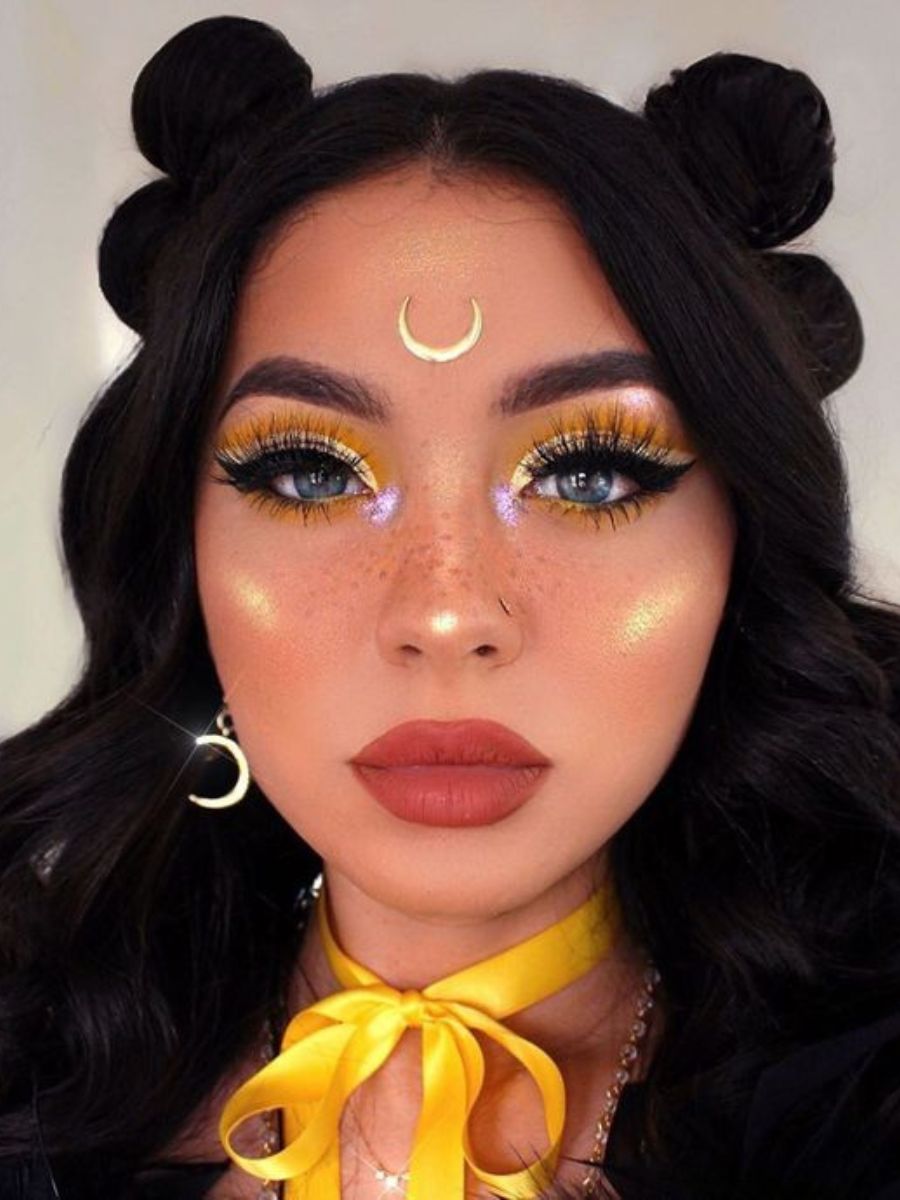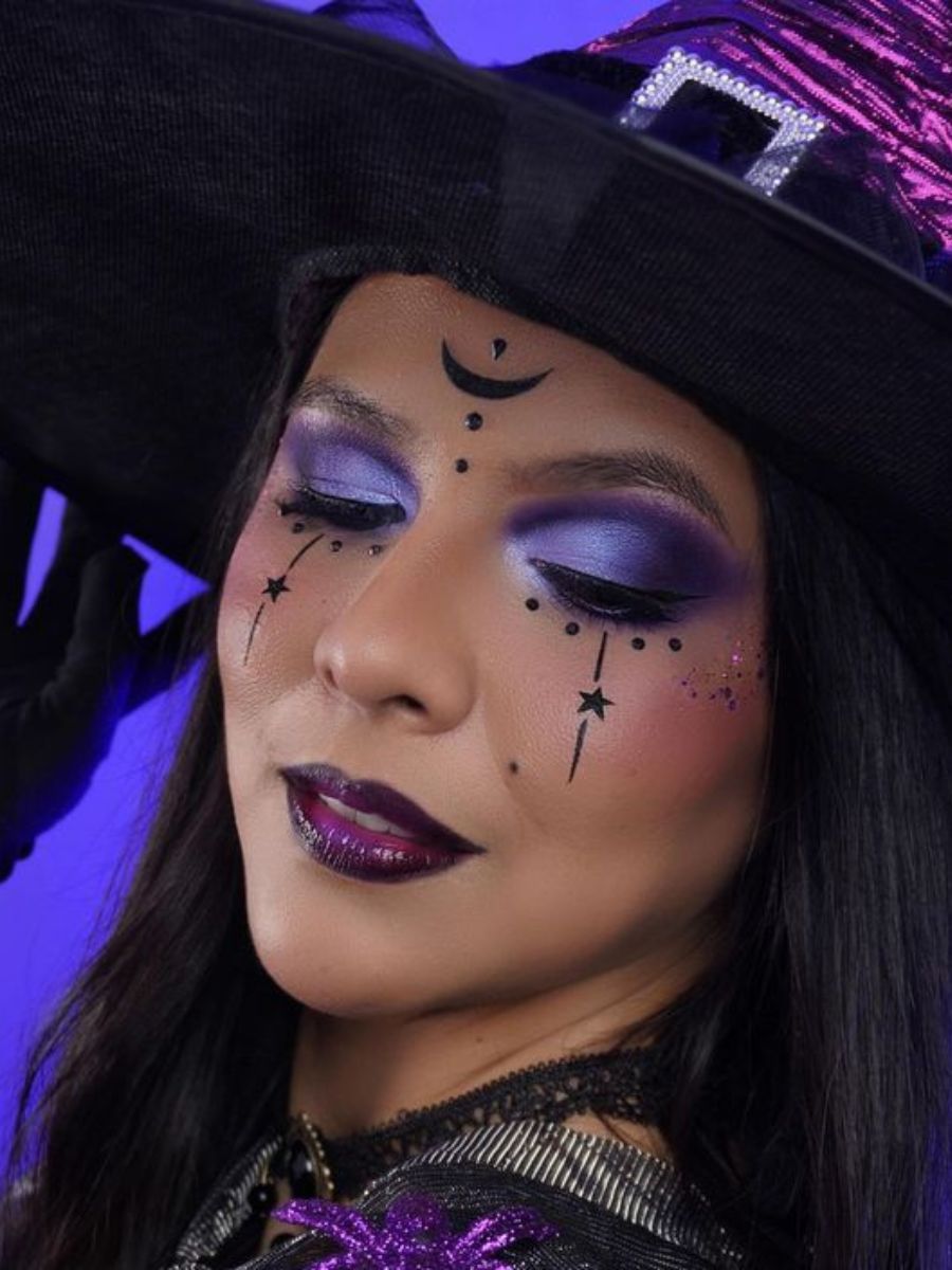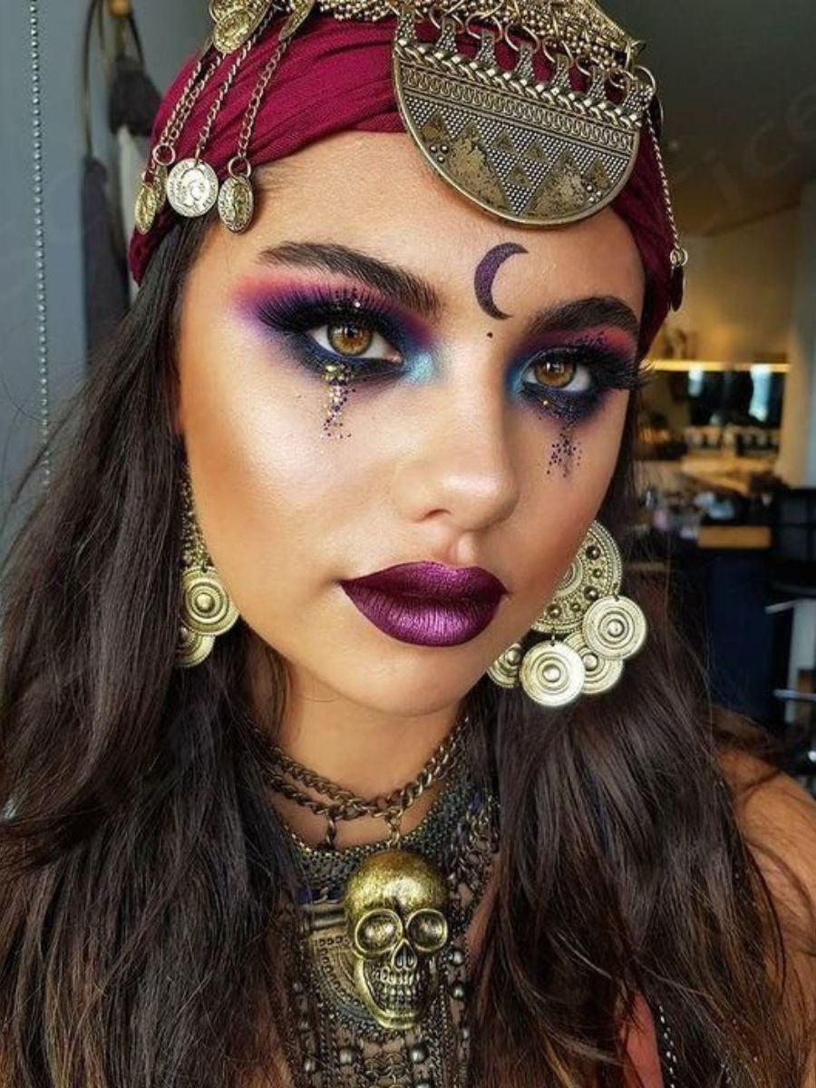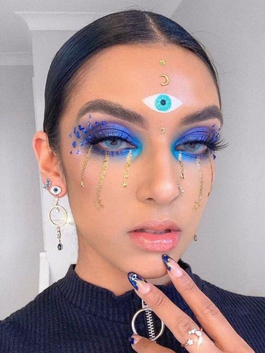 Clasicul machiaj de vrăjitoare se reinventează și prinde accente de sirenă. Dacă mizezi pe un costum de Halloween care să te facă să te simți ca și cum toată magia adâncurilor e în mâinile tale, atunci fardurile de ochi stridente, în nuanțe de albastru, mov sau auriu, sunt o alegere aproape evidentă.