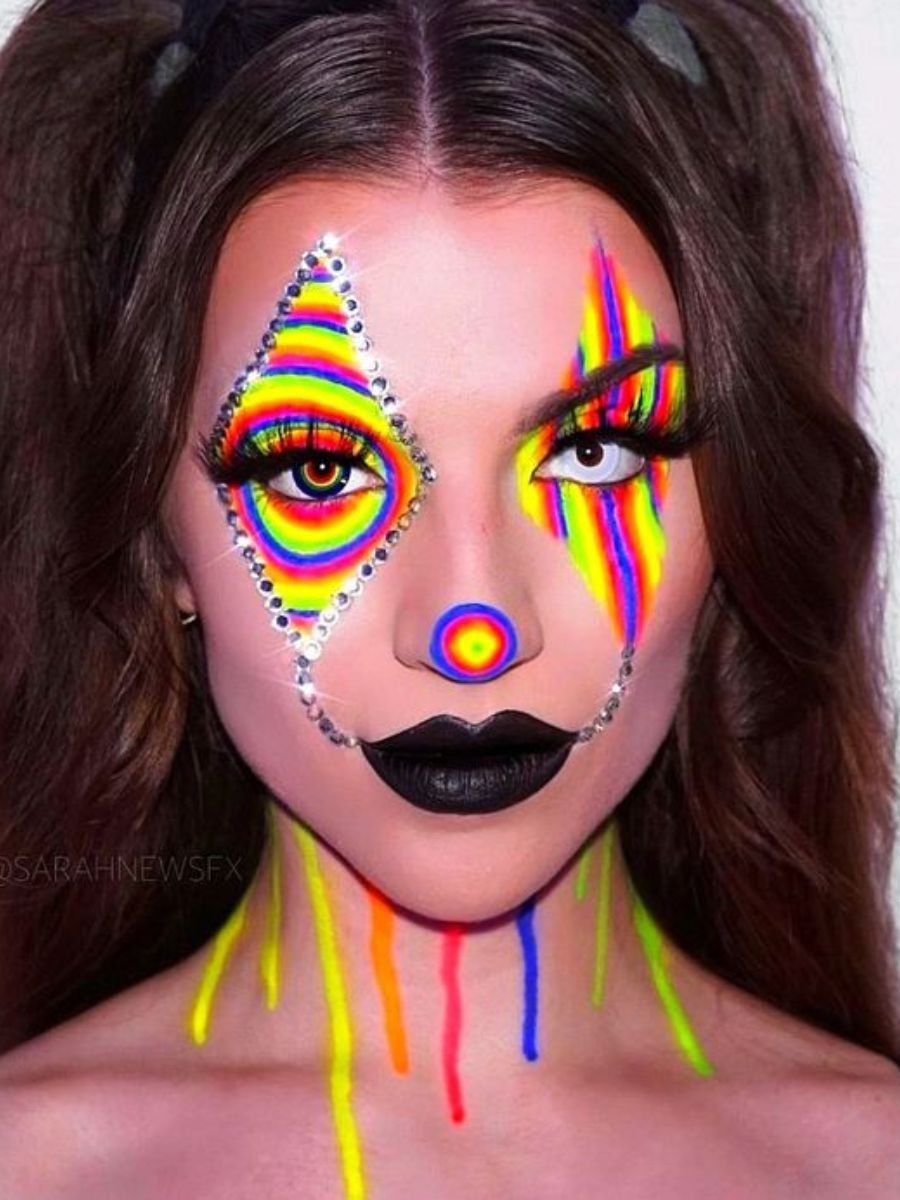 Dacă îți dorești un machiaj care să atragă toate privirile, arlechinul colorat este alegerea perfectă. Folosește vopsele acrilice pentru a picta modele geometrice pe față și completează cu paletele de farduri în culori vii pentru acel look extra. De asemenea, poți începe cu un machiaj glam ca bază și folosi doar câteva elemente reprezentative pentru a pune mai mult accent pe tine. Până la urmă, anul acesta e trendy să te exprimi exact așa cum vrei.