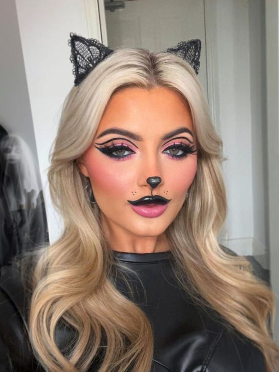 Machiajul de pisică este mereu la modă de Halloween. În acest an, însă, look-ul de felină feroce înlocuiește accentele cuminți și drăgălașe cu imprimeurile de ghepard și leopard, aflate în fruntea căutărilor. Indiferent de estetica pentru care optezi, pune accentul pe privire cu un tuș pe care îl vei aplica atât în colțul intern, cât și extern, și farduri de pleoape strălucitoare pentru a adăuga o notă glam.