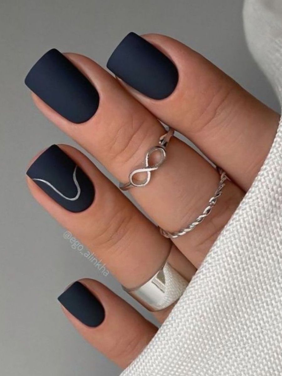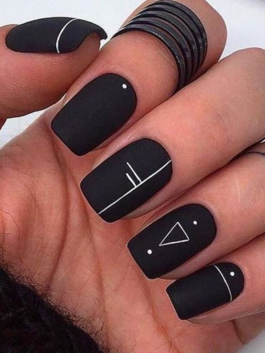 Minimalismul e magnetism. Un detaliu metalic sau o linie subțire poate transforma imediat unghiile negre scurte într-o manichiură elegantă, cu aer high-fashion.
