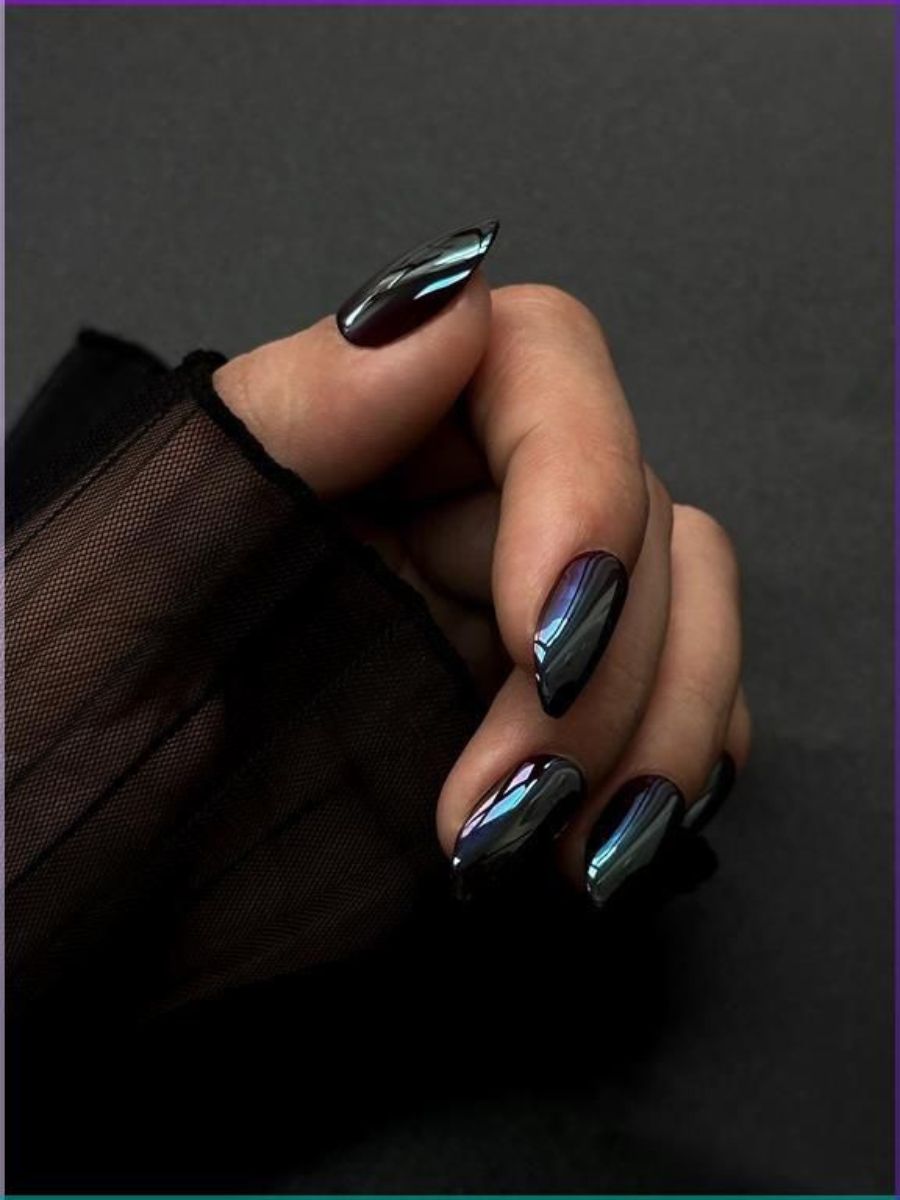 Pigmenții diferiți reacționează diferit la lumină. Un negru cu subton albastru va părea mai rece, în timp ce unul cu subton verde sau maro va părea mai cald. Poți ajusta lookul cu un top coat mat, care neutralizează subtonurile vizibile.