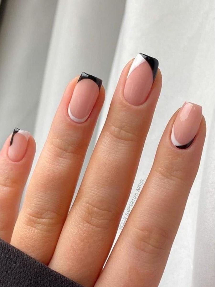 Negrul și albului sunt combinația care nu greșește niciodată. Contrastul este puternic, clar, elegant — perfect pentru unghiile scurte, unde liniile simple și designurile curate arată cel mai bine. Este o alegere modernă, dar cu rădăcini în estetica minimalistă clasică.
