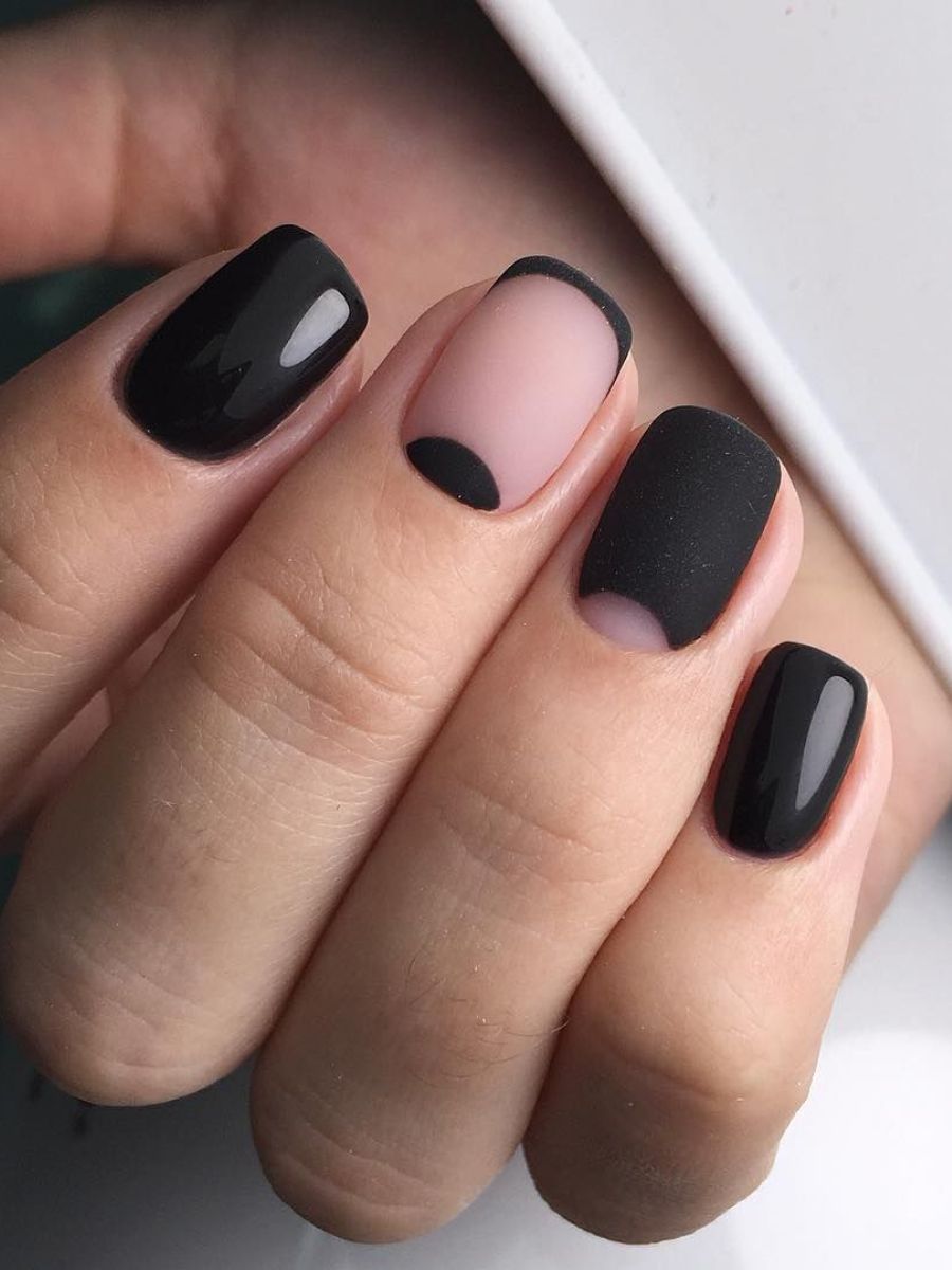 Contrastul dintre mat și lucios este una dintre cele mai elegante combinații pentru unghiile scurte.
